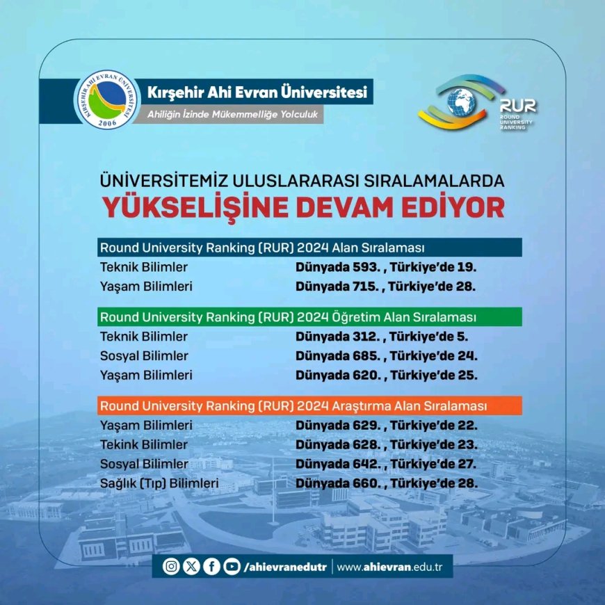 Kırşehir Ahi Evran Üniversitesi (KAEÜ), uluslararası sıralamalarda elde ettiği başarılarla dikkat çekmeye devam ediyor.