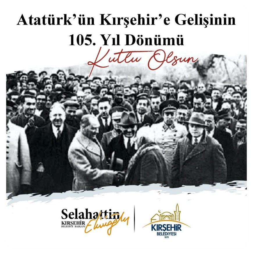 Kırşehir Belediye Başkanı Selahattin Ekicioğlu, 24 Aralık 1919 tarihinde, Ulu Önder Mustafa Kemal Atatürk ve beraberindeki Temsil Heyeti üyelerinin, milli mücadele ruhunu Anadolu’ya yaymak amacıyla Kırşehir’e gelişinin 105. yılı nedeniyle anlamlı bir mesaj yayınladı. Ekicioğlu, bu tarihi olayın önemine dikkat çekerek, Atatürk ve silah arkadaşlarının Kırşehir halkı tarafından nasıl coşku ile karşılandığını hatırlattı.