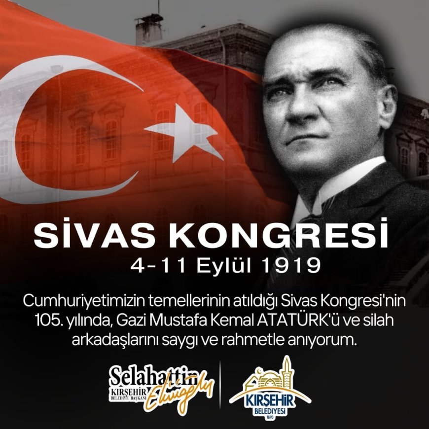 Kırşehir Belediye Başkanı Selahattin Ekicioğlu, Cumhuriyetimizin temellerinin atıldığı Sivas Kongresi'nin 105. yıldönümünü anmak için bir mesaj yayımladı. Ekicioğlu, sosyal medya üzerinden yaptığı paylaşımda şunları belirtti: