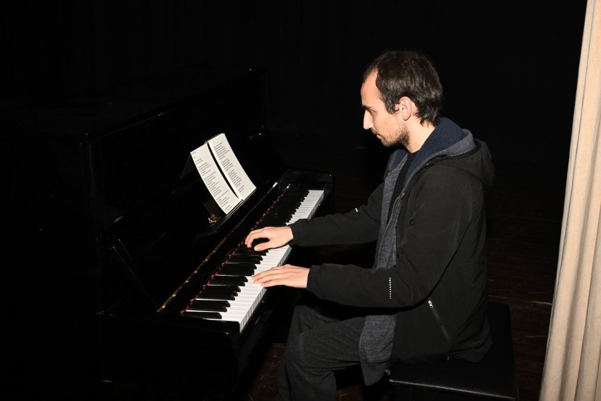 “Dizelerde Kadın Olmak” temalı şiir dinletisine Piyanist Şeref Şafak Kıymaz da katkı sundu.